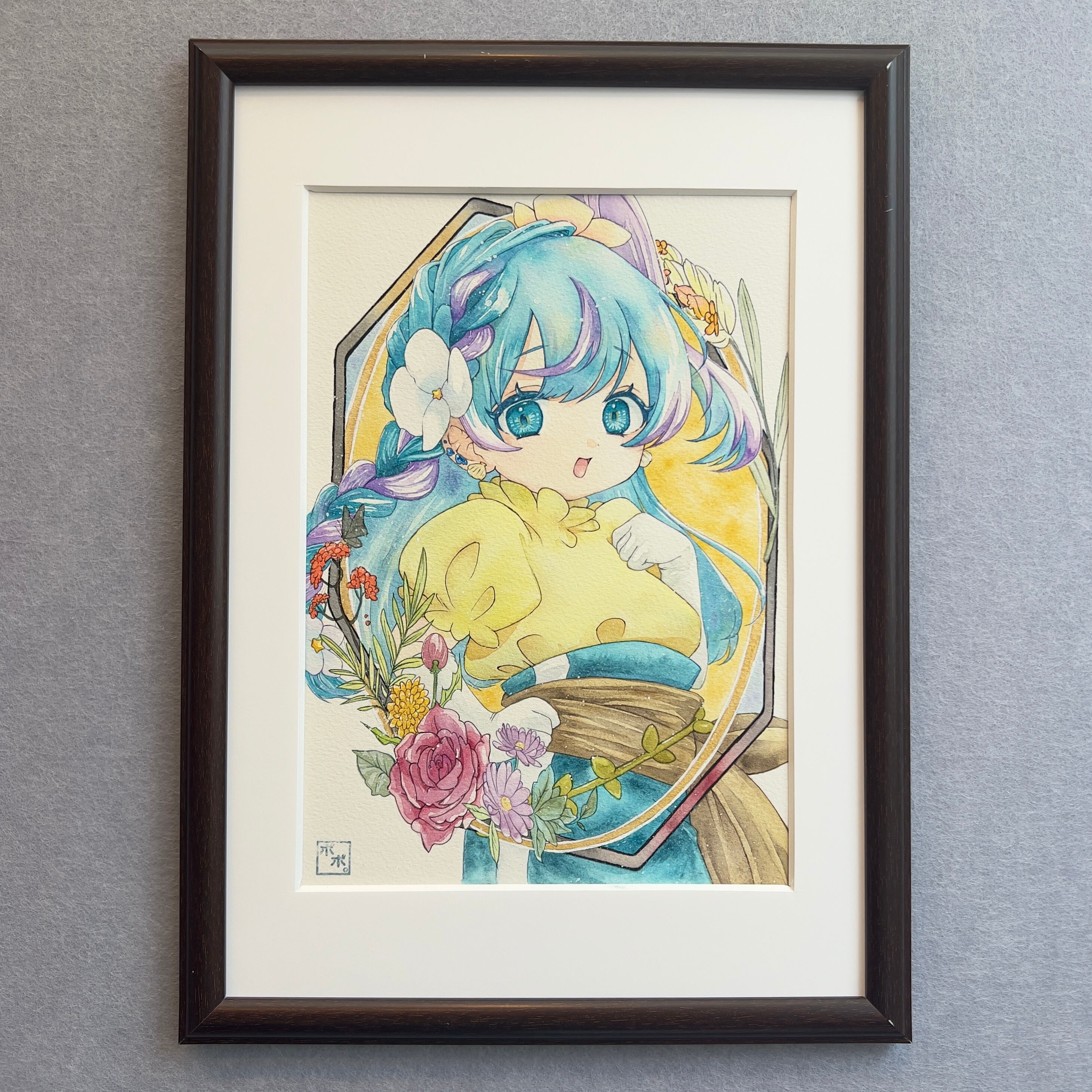 販売価格を抑えるために素人が作成した簡易的な額装となっておりますので、気になる場合はお好みの額装を施すことを推奨しております。