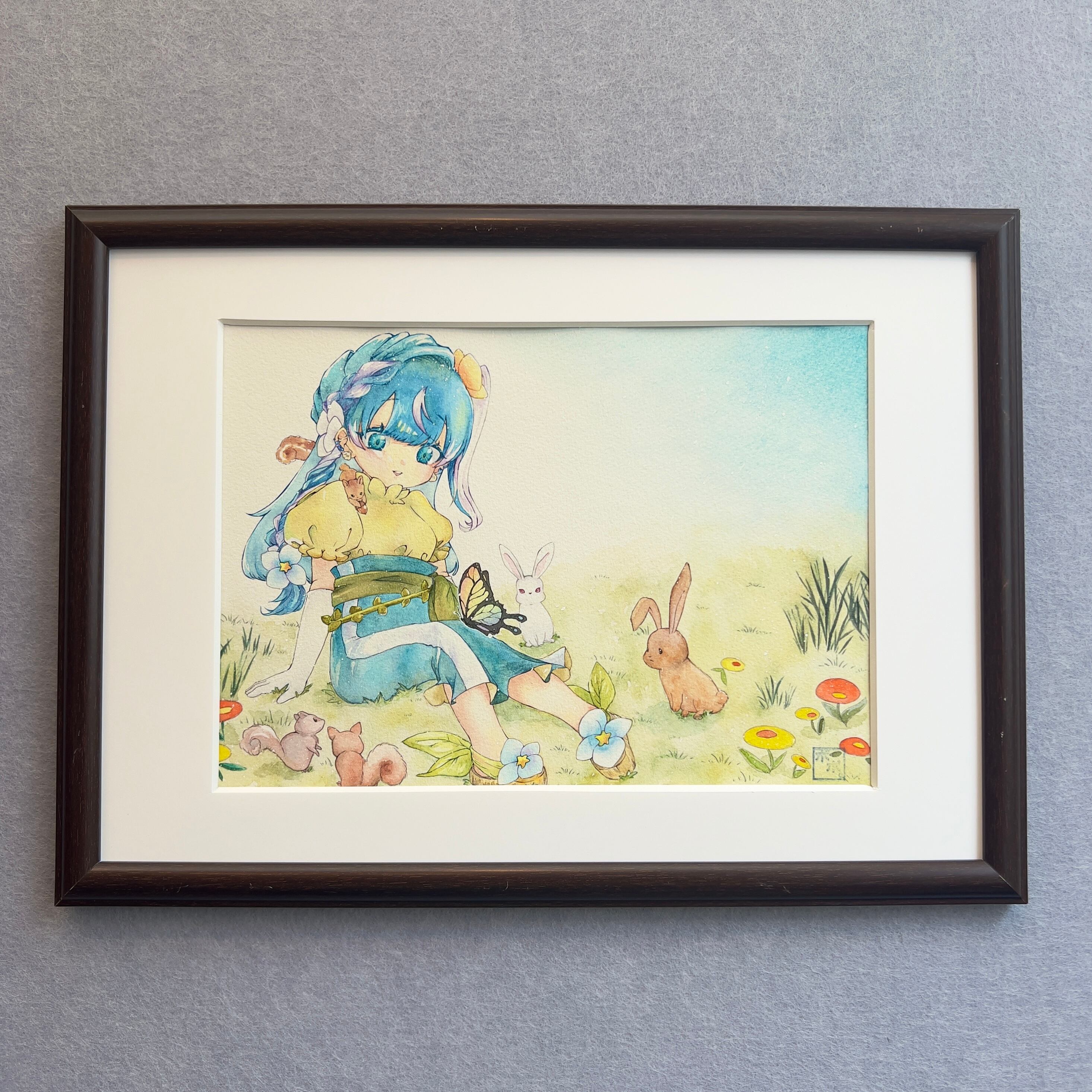 販売価格を抑えるために素人が作成した簡易的な額装となっておりますので、気になる方はお好みの額装を施すことを推奨しております。