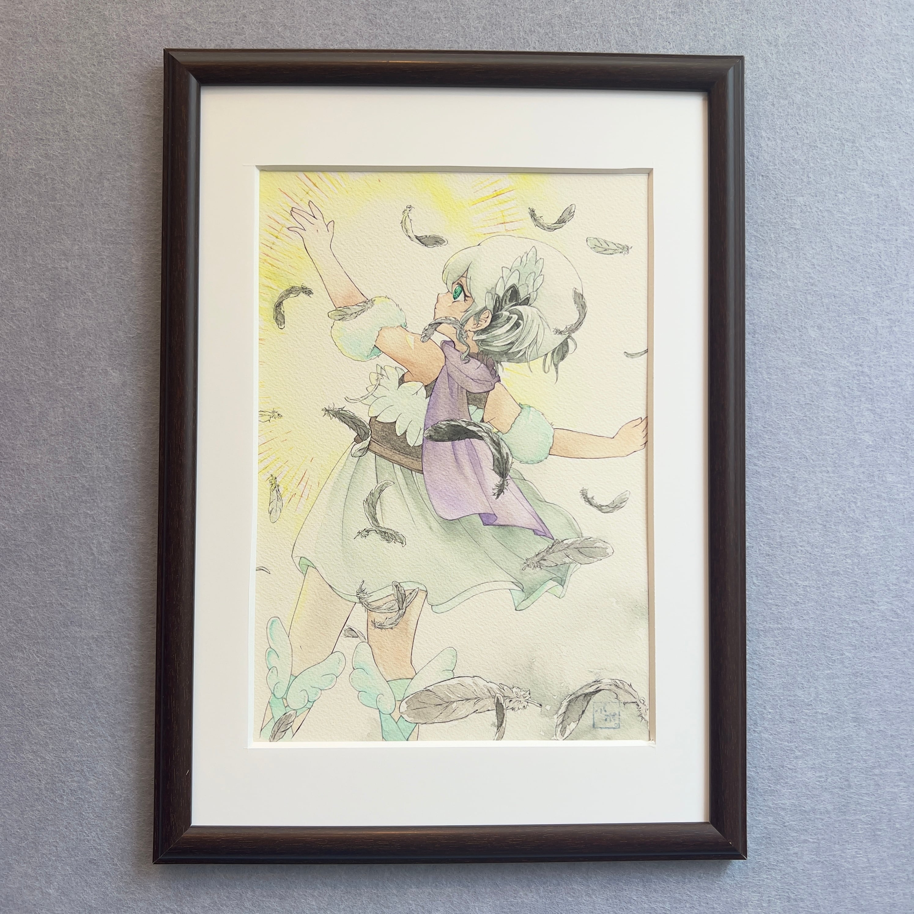 販売価格を抑えるために素人が作成した簡易的な額装となっておりますので、気になる方はお好みの額装を施すことを推奨しております。